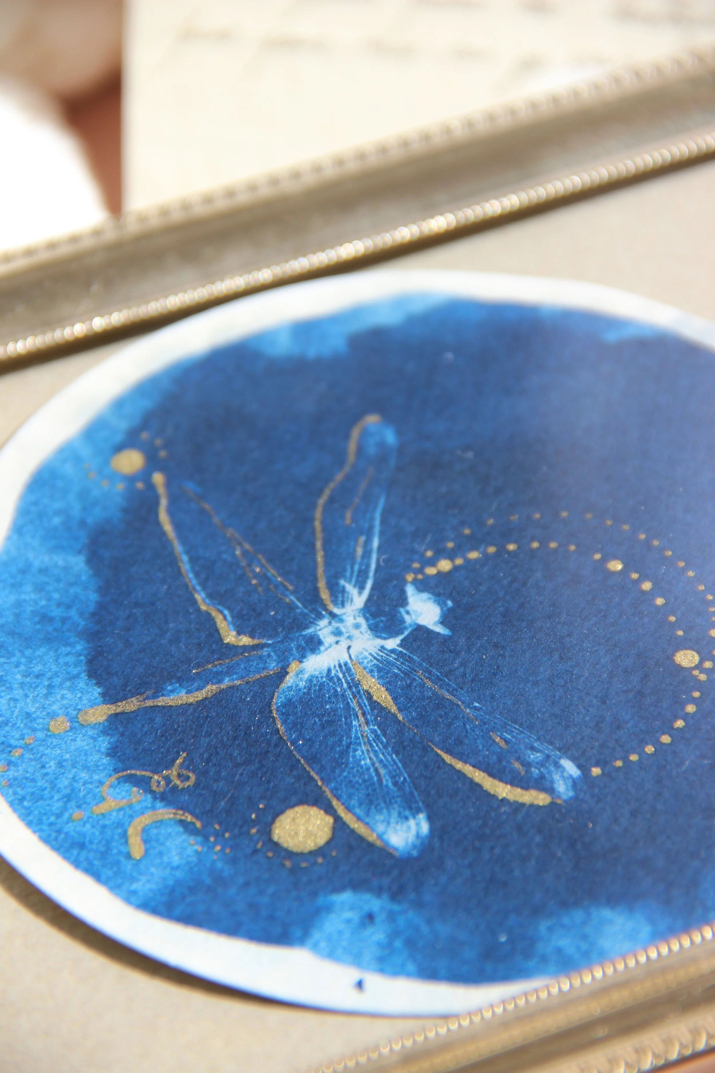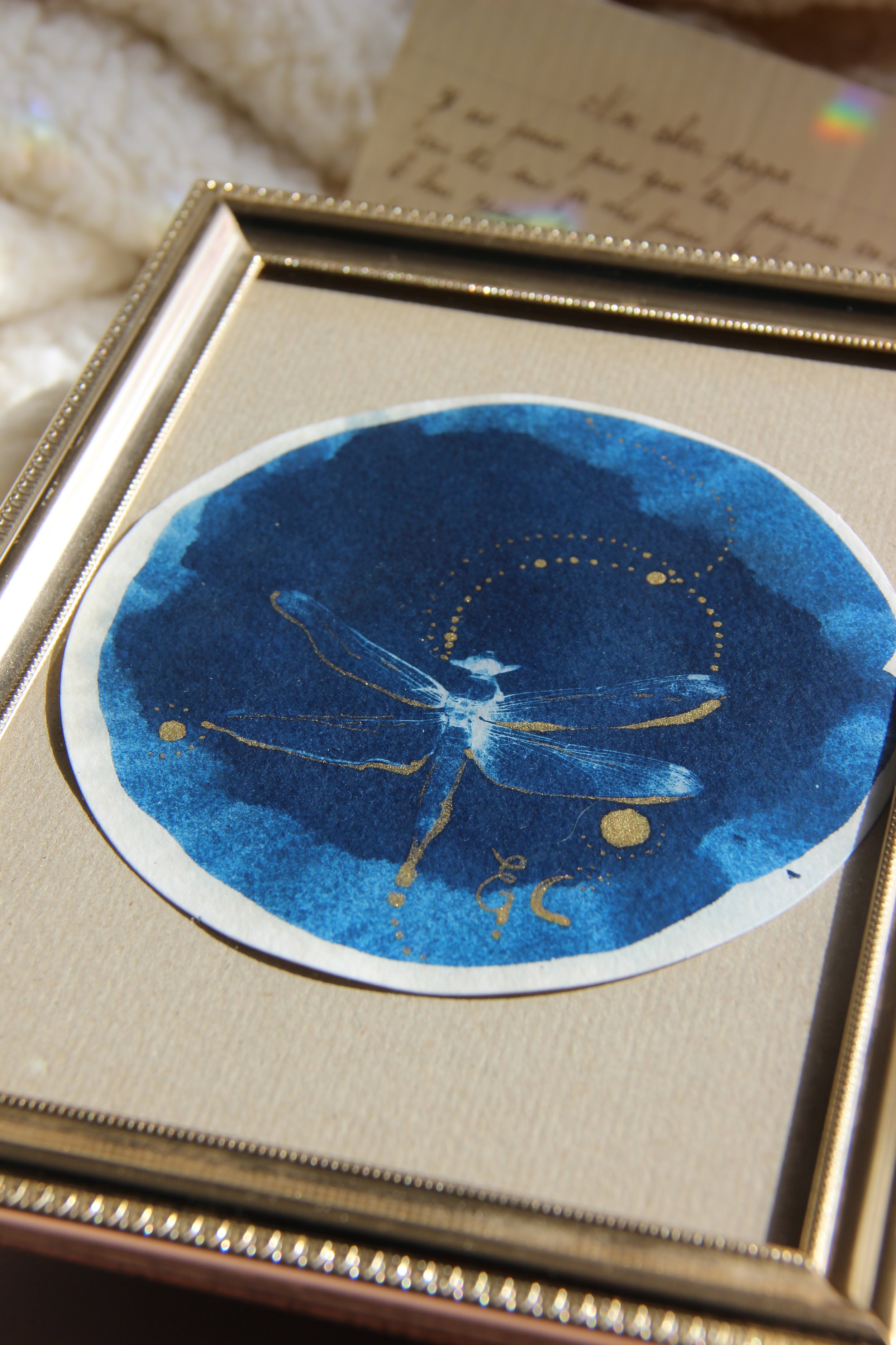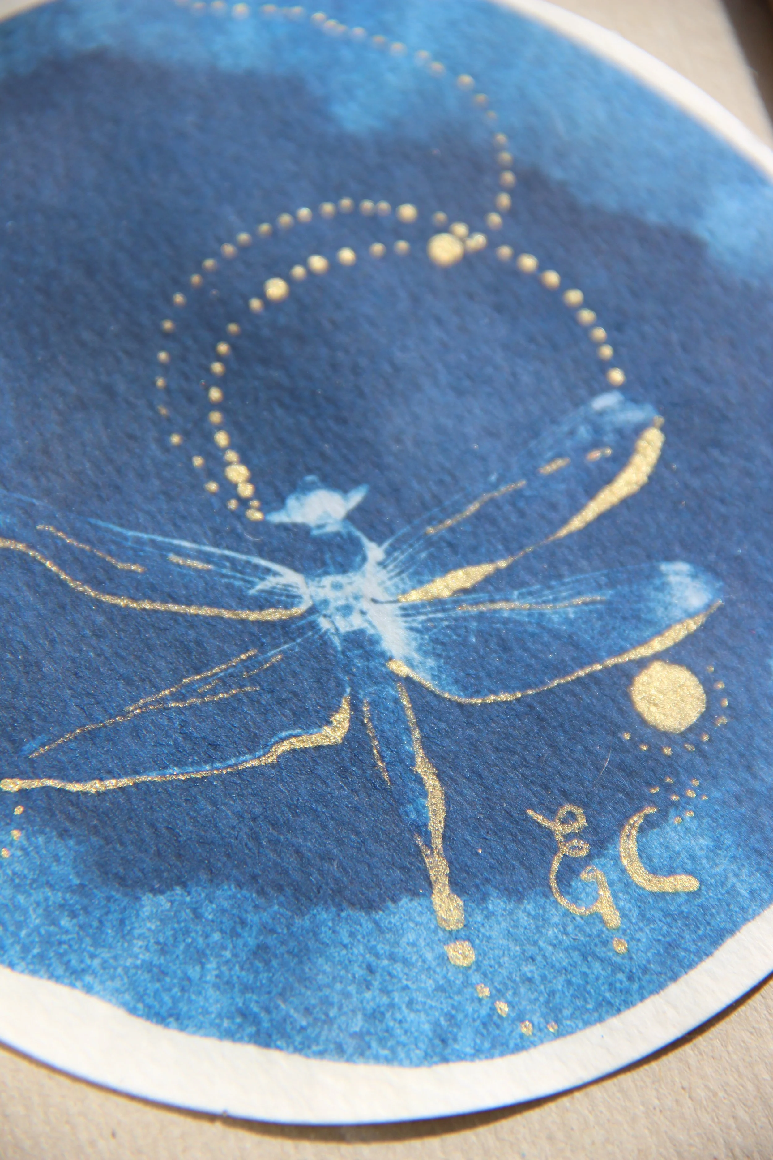 Les deux points dorés placés sous les ailes rappellent les appuis, les présences bienveillantes de ces êtres chers, qui sont comme deux pierres stables sur lesquelles ton cœur peut se reposer.