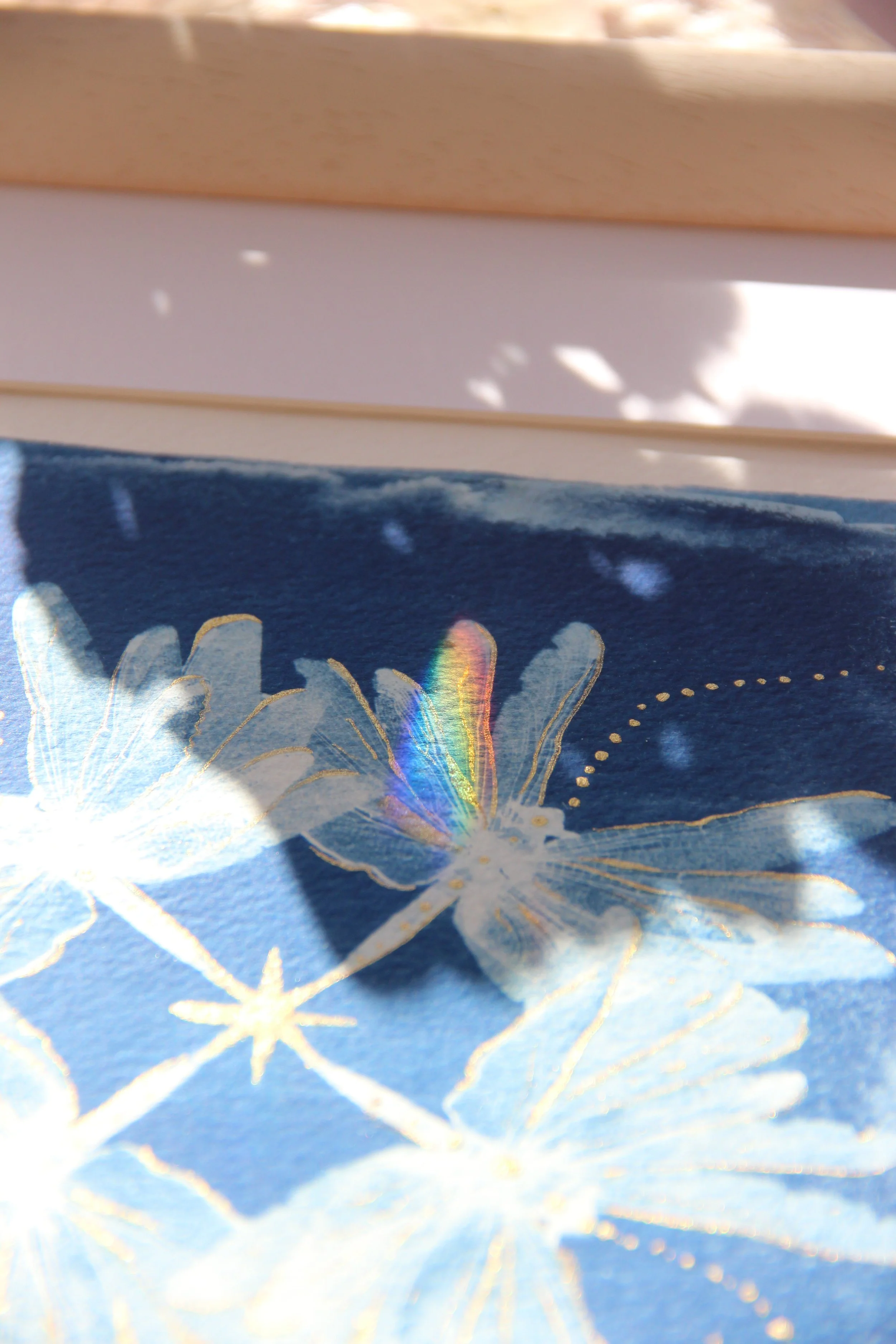 Cette forme globale offerte par les libellules et la lune raconte ton propre chemin réparé, tes blessures devenues sagesse, ton vécu qui est devenu matière pour comprendre les autres.